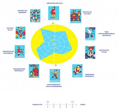 Concrètement, L’ENTRETIEN PRÉNATAL PRÉCOCE et L’ENTRETIEN POST-NATAL PRÉCOCE sont des jeux de cartes avec lesquels la future maman & le co-parent remplissent leur propre CARTOGRAPHIE de l’état émotionnel ressenti à l’instant T par rapport à la situation actuelle (grossesse, accouchement récent, post-partum, accueil de bébé) et des moments du passé. Cela permet également de questionner l’histoire de vie dans le respect de l’intimité du parent.